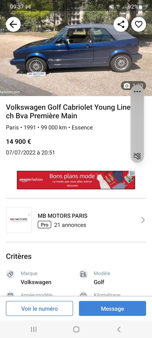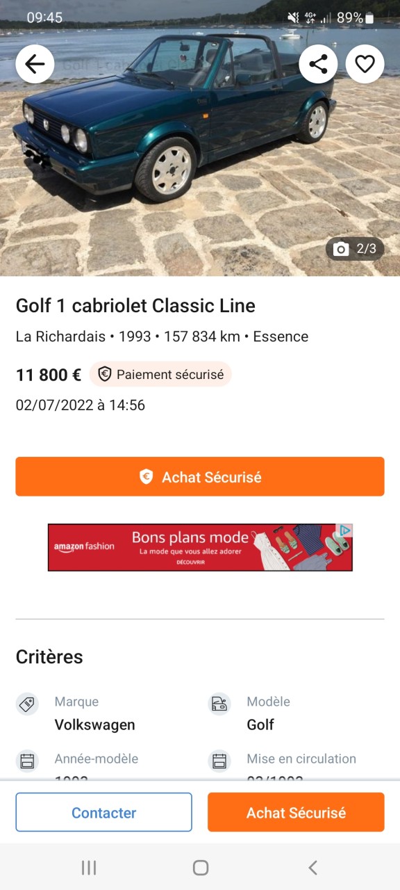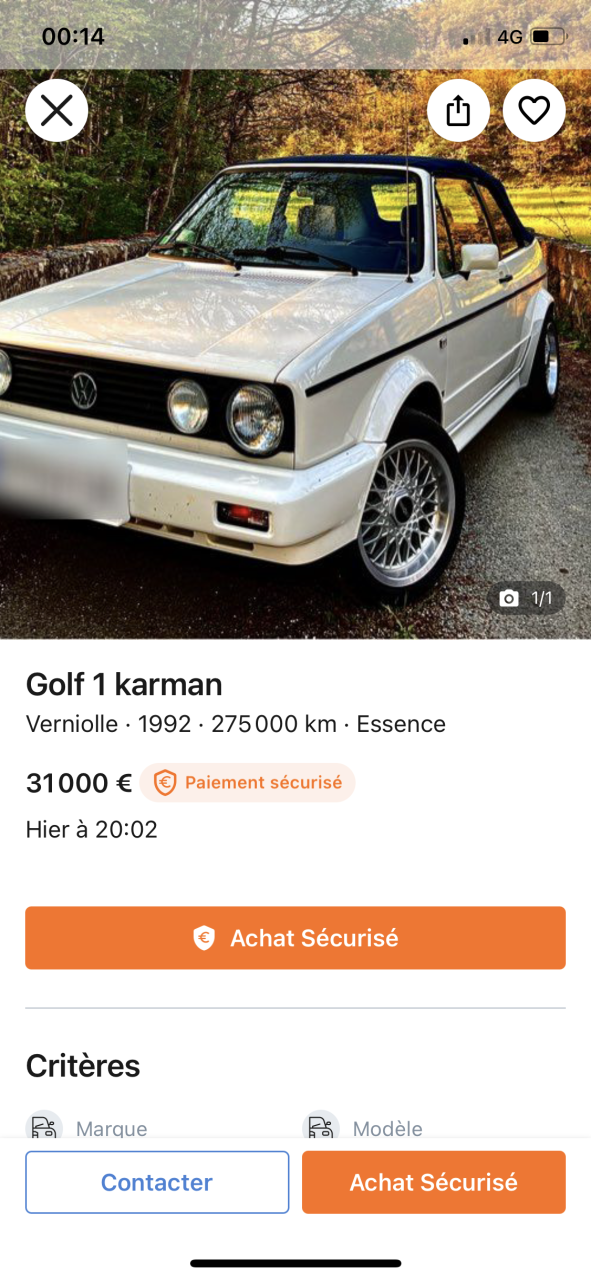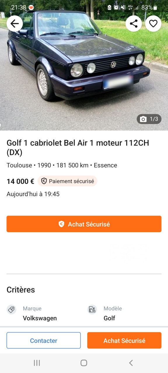 - Voiture : Golf 1 cabriolet