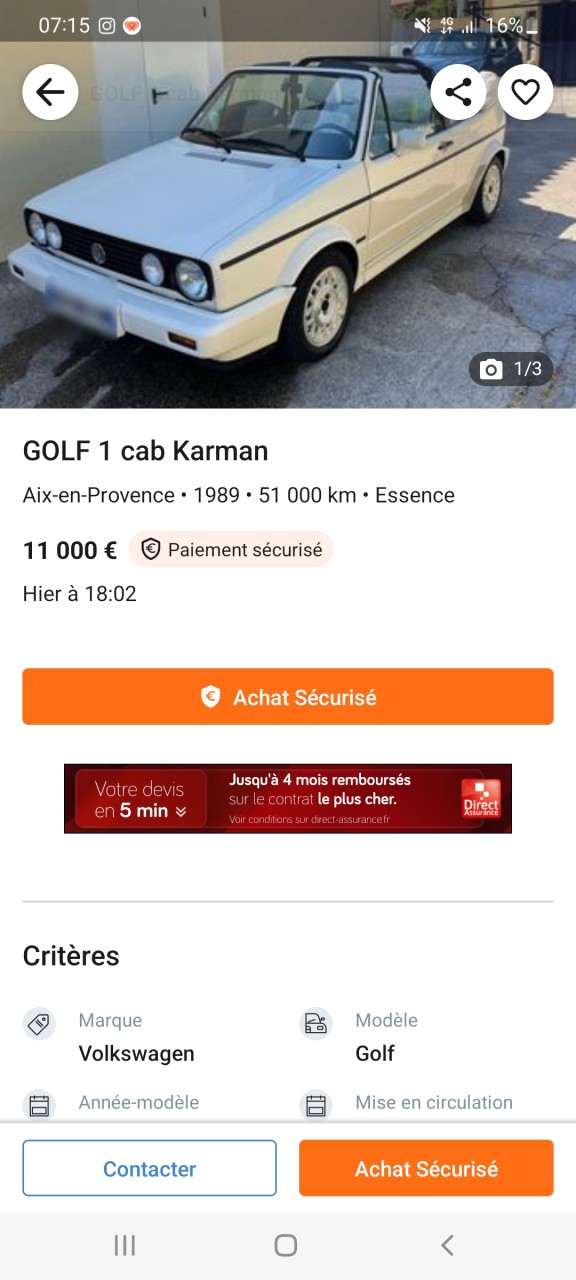 Re: Golf 1 Cabriolet...belles occasions au-dessus de 10.000€