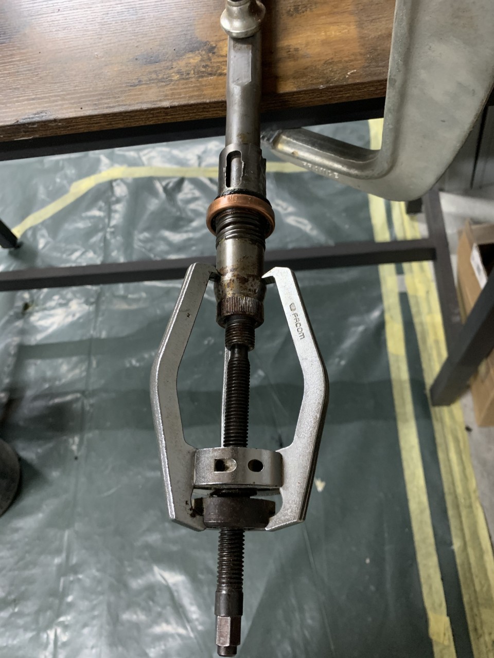Avec l outil à griffe,, je n'y suis pas arrivé. J'ai utilisé un séparateur de roulement.