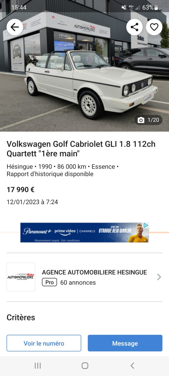 Re: Golf 1 Cabriolet...belles occasions au-dessus de 10.000€
