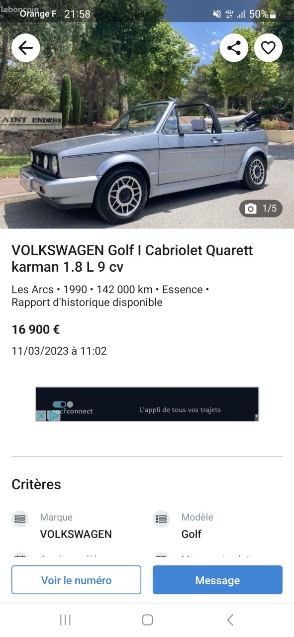 Golf 1 Cabriolet...belles occasions au-dessus de 10.000€
