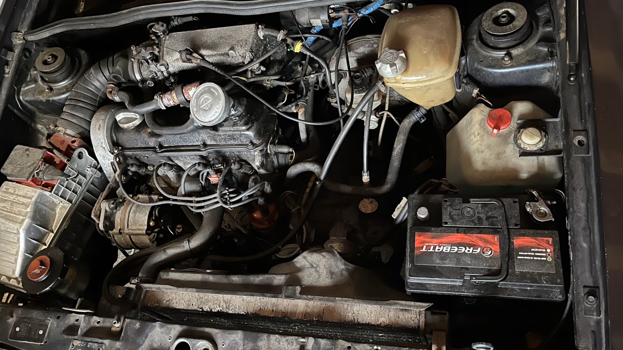 Apparemment tu n'as pas le support tole pour supporter le k-jet et la place tu as le réservoir de lave glace typique aux carbus, de toute évidence ce n'est sûrement pas une gli et le moteur provient certainement d'une Golf 2 8s digifant