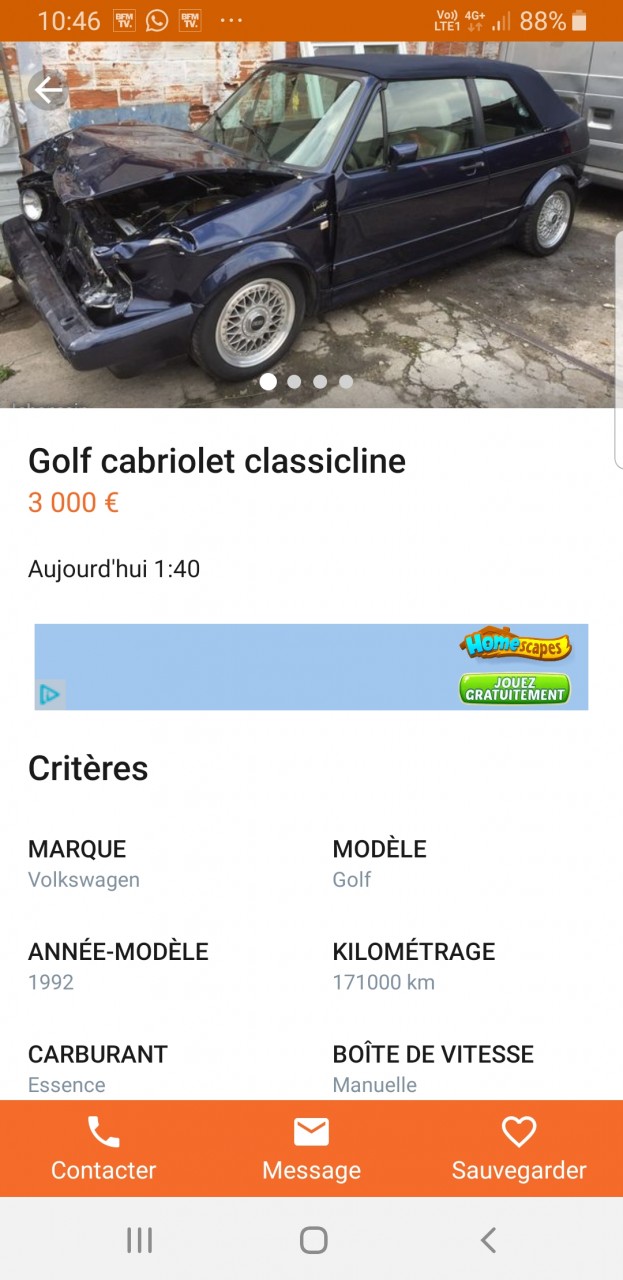 Re: Golfs 1 Cabriolets.... accidentées :(
