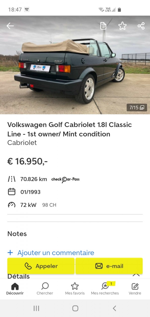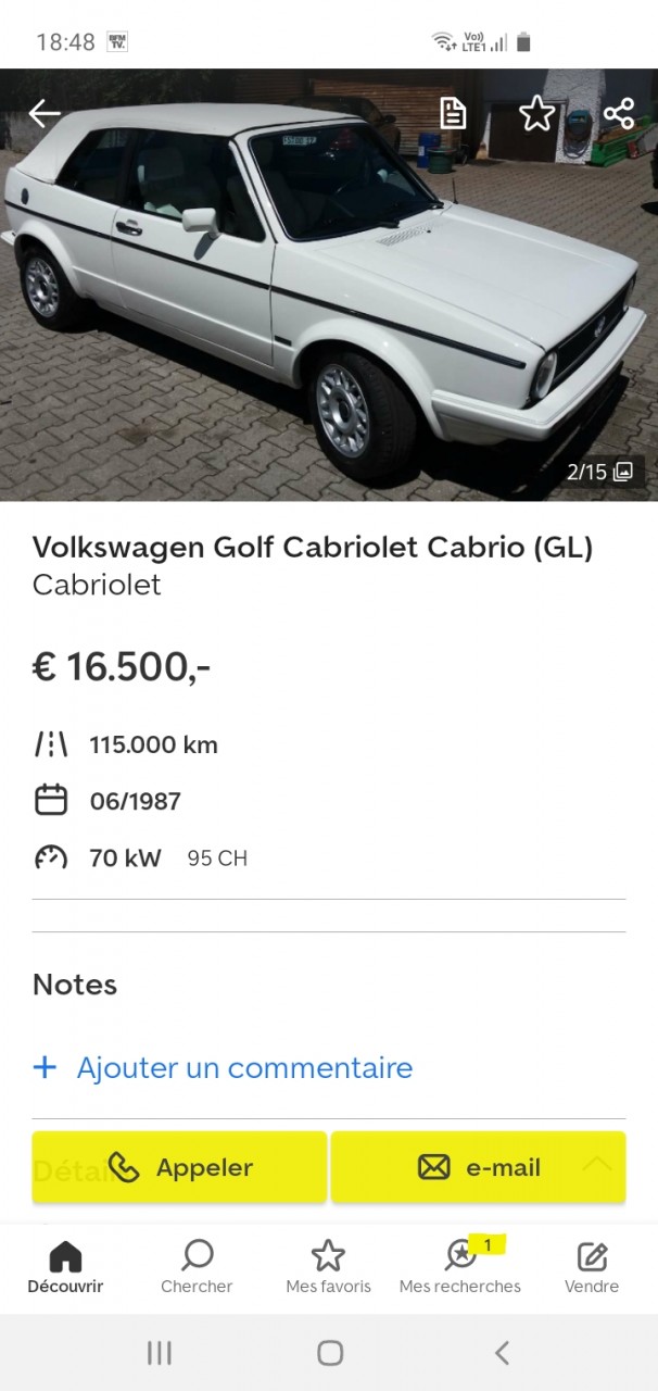 Re: Golf 1 Cabriolet...belles occasions au-dessus de 10.000€