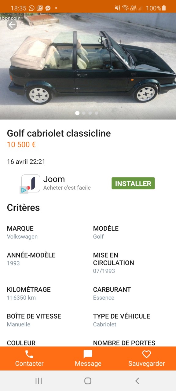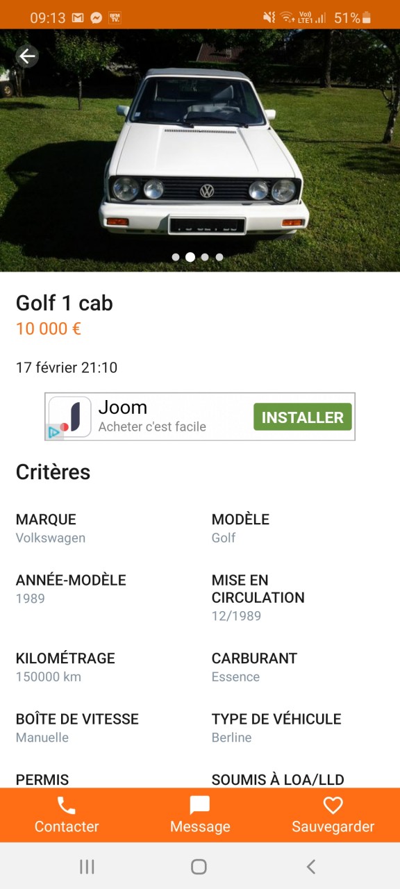 - Voiture : Golf 1 cabriolet