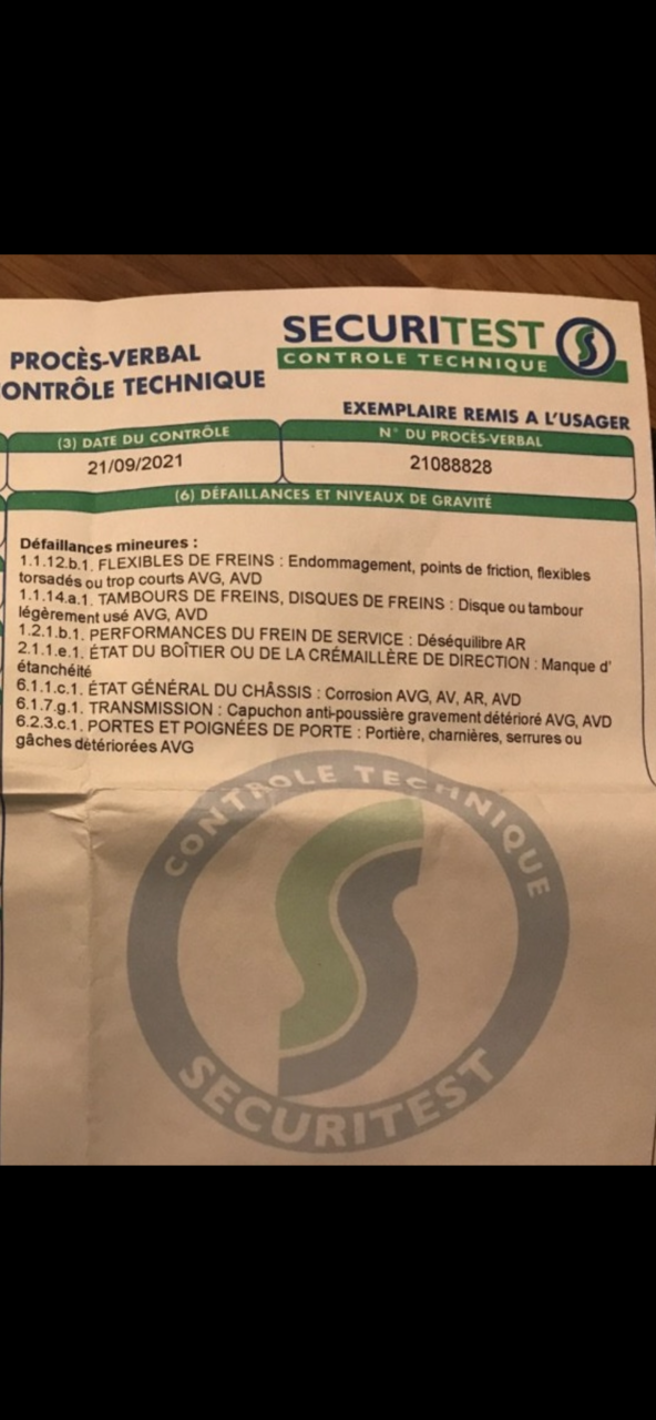 Également il m’a parler de quelque défauts carrosserie comme petite rayure et trace de corrosion comme stipulé sur le CT mais il l’assure que cela n’est pas perforant
