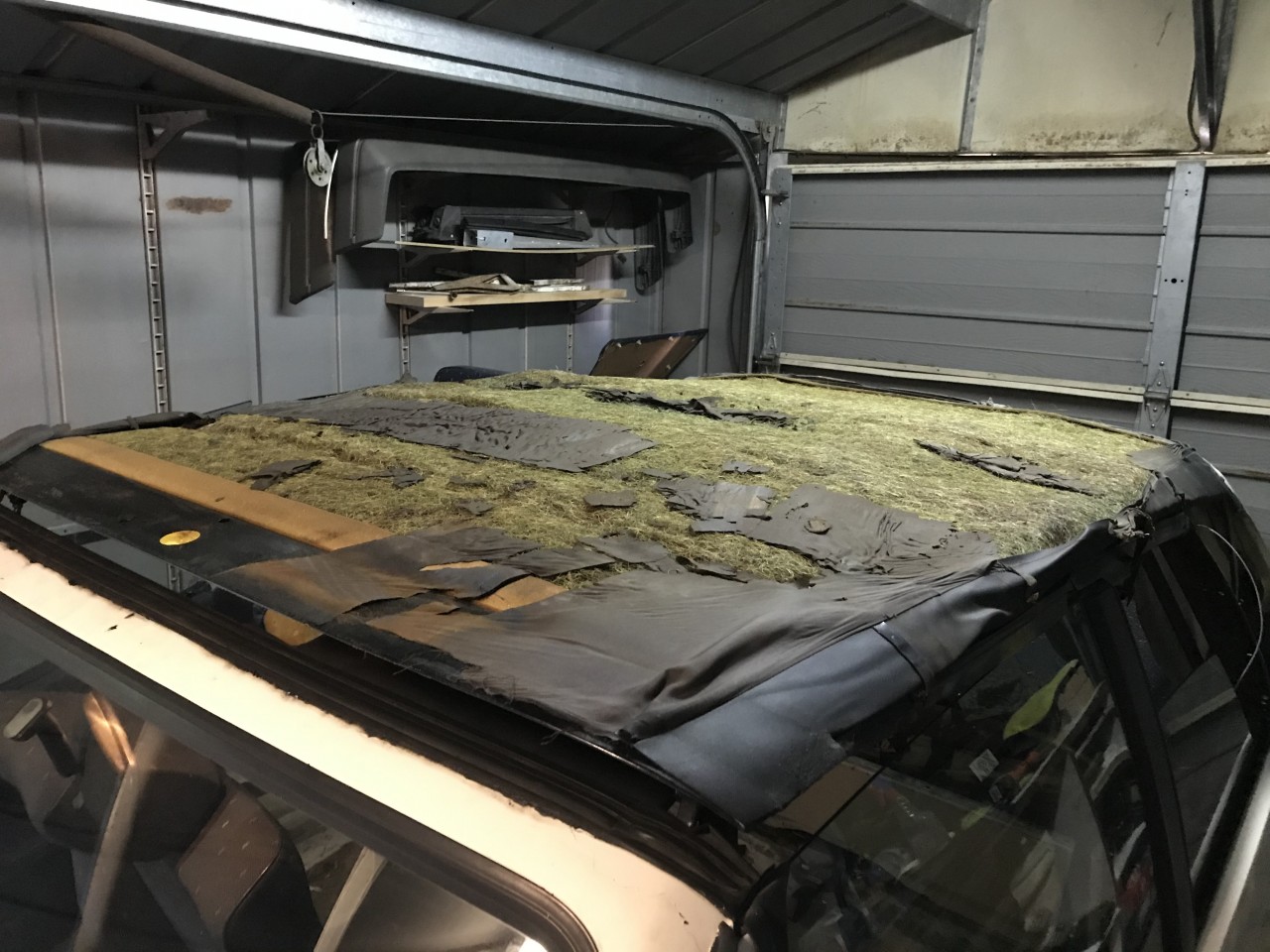 Ciel de toit décollé, matelassure HS et capote devenue noire au lieu d un bleu d origine