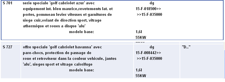 sur le logiciel vw il y a aussi un chevauchement entre la havana et la azur au niveau des numéros de chassis: