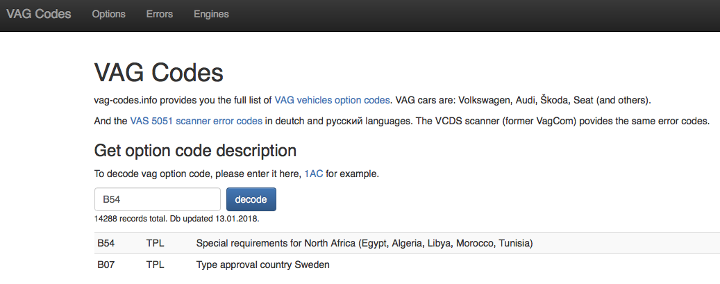 Sur le site http://vag-codes.info, j'ai trouvé ça... Est-ce que ça peut être pris en compte pour nos vieilles autos ou c'est uniquement pour les récentes ?