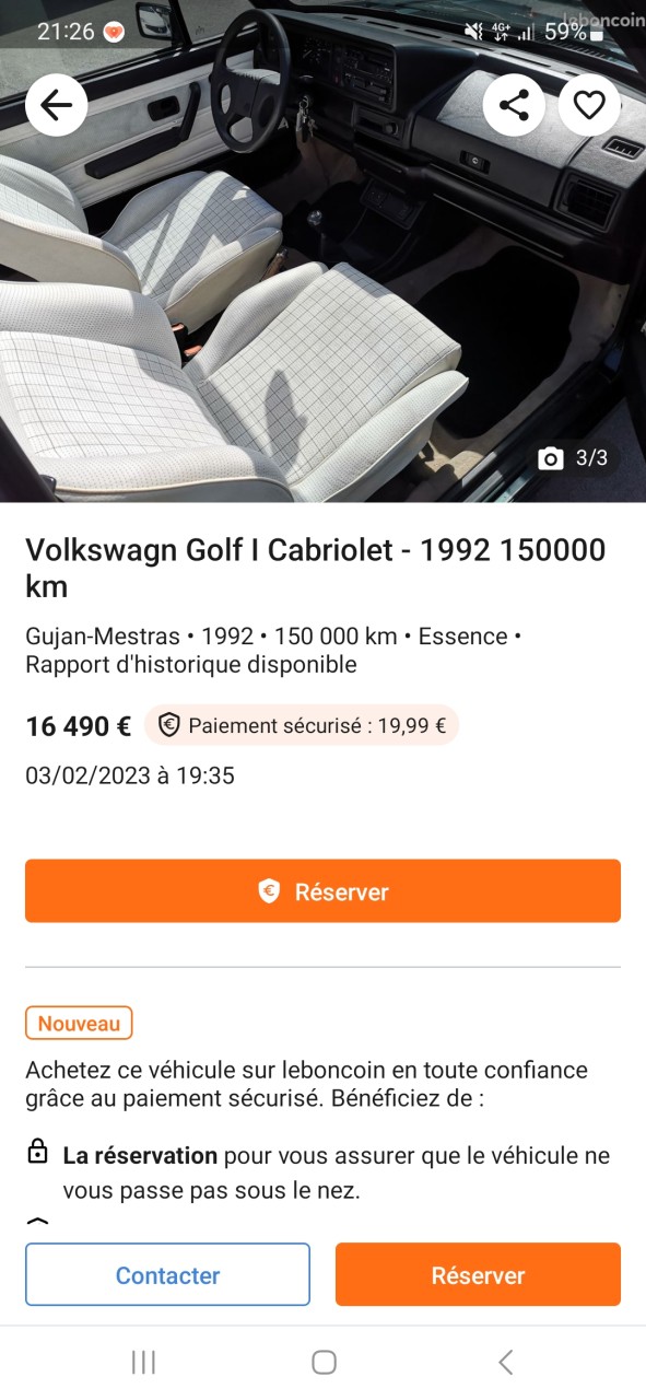 Re: Golf 1 Cabriolet...belles occasions au-dessus de 10.000€