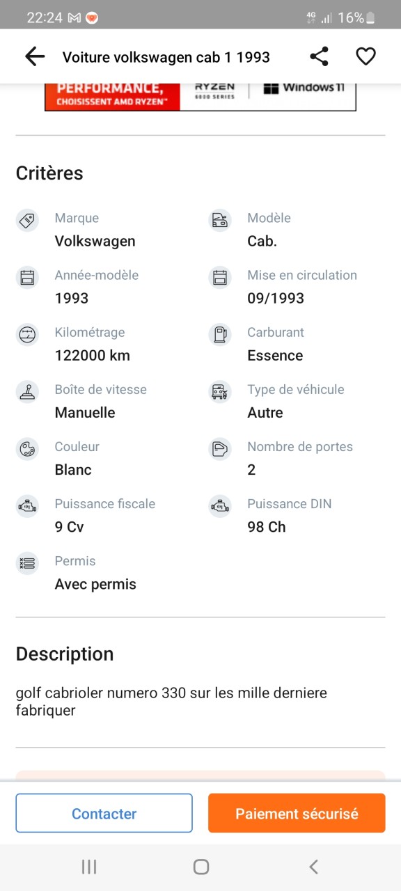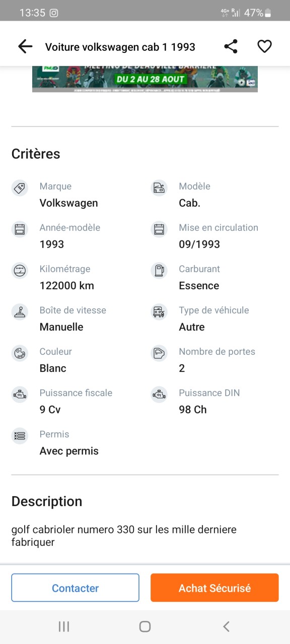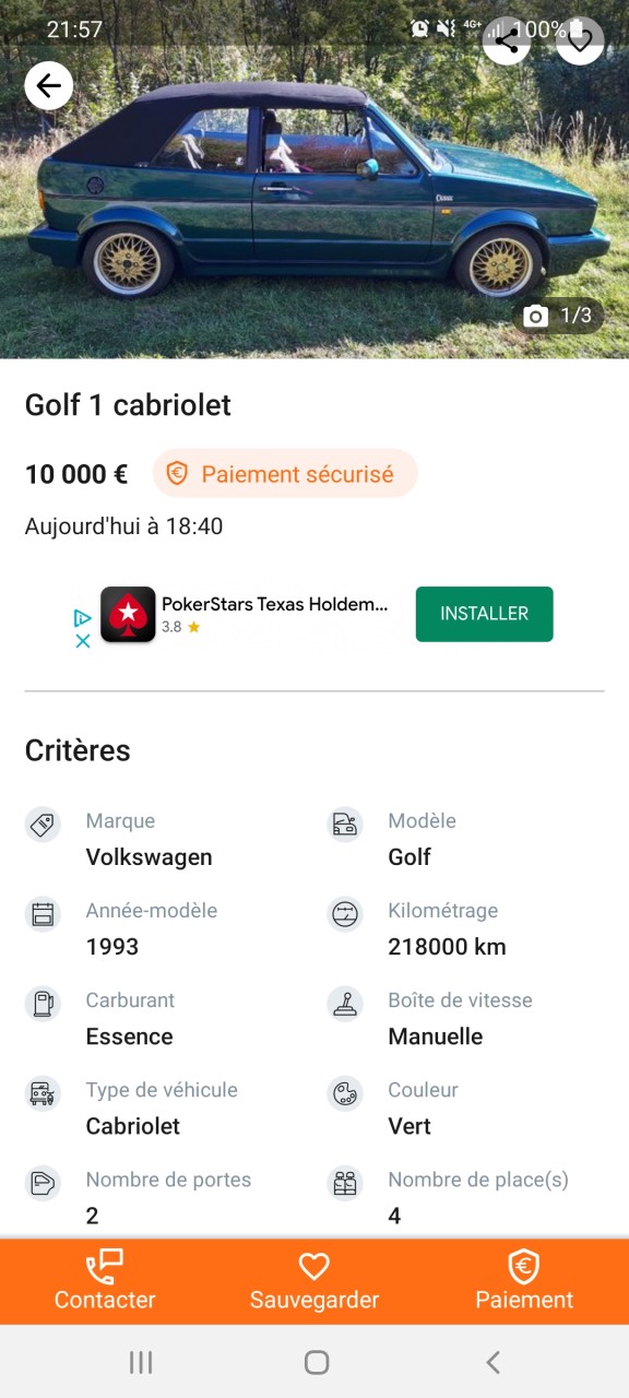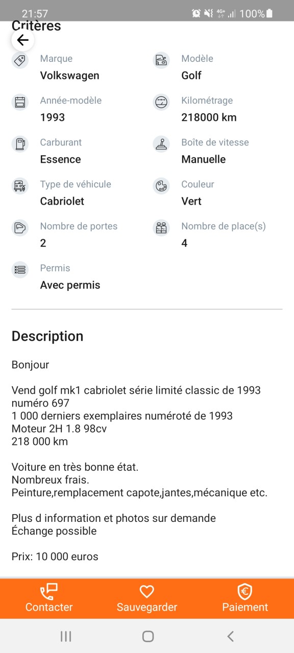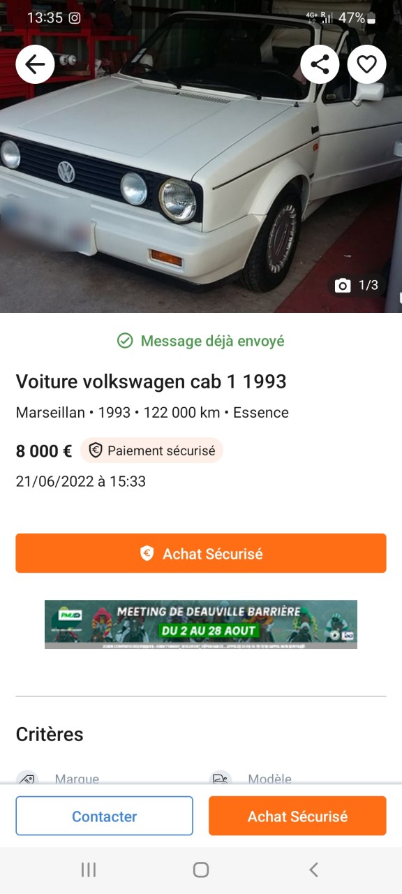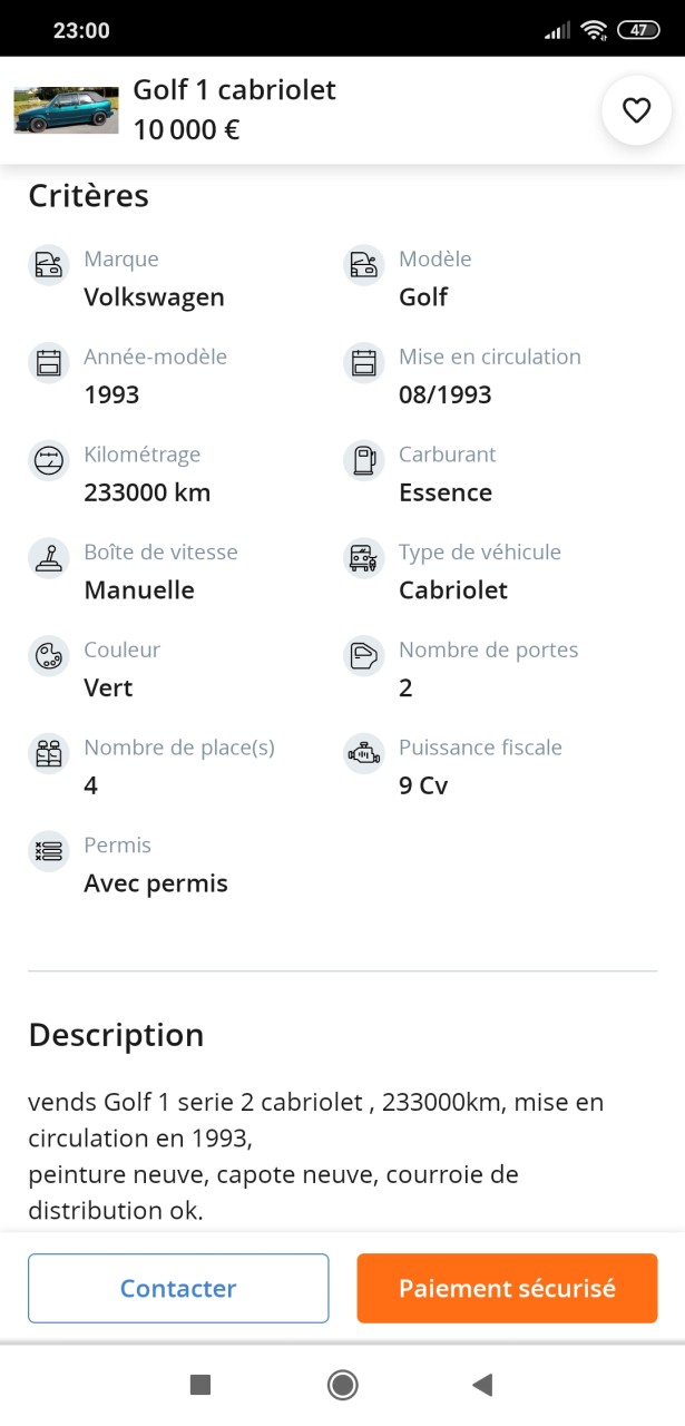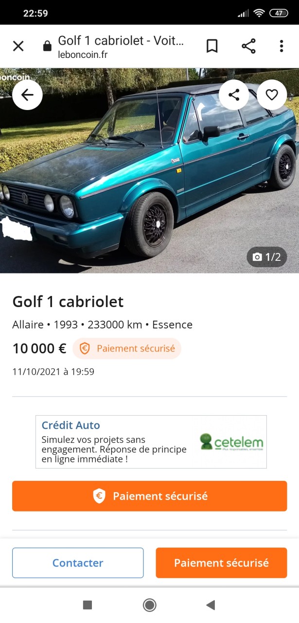 - Voiture : Golf 1 cabriolet