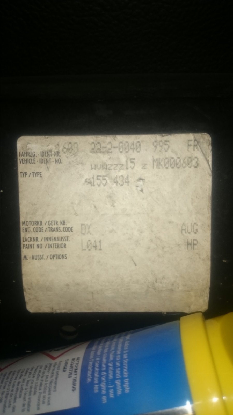 Le numéro de châssis VIN (WVWZZZ15ZGK019645)