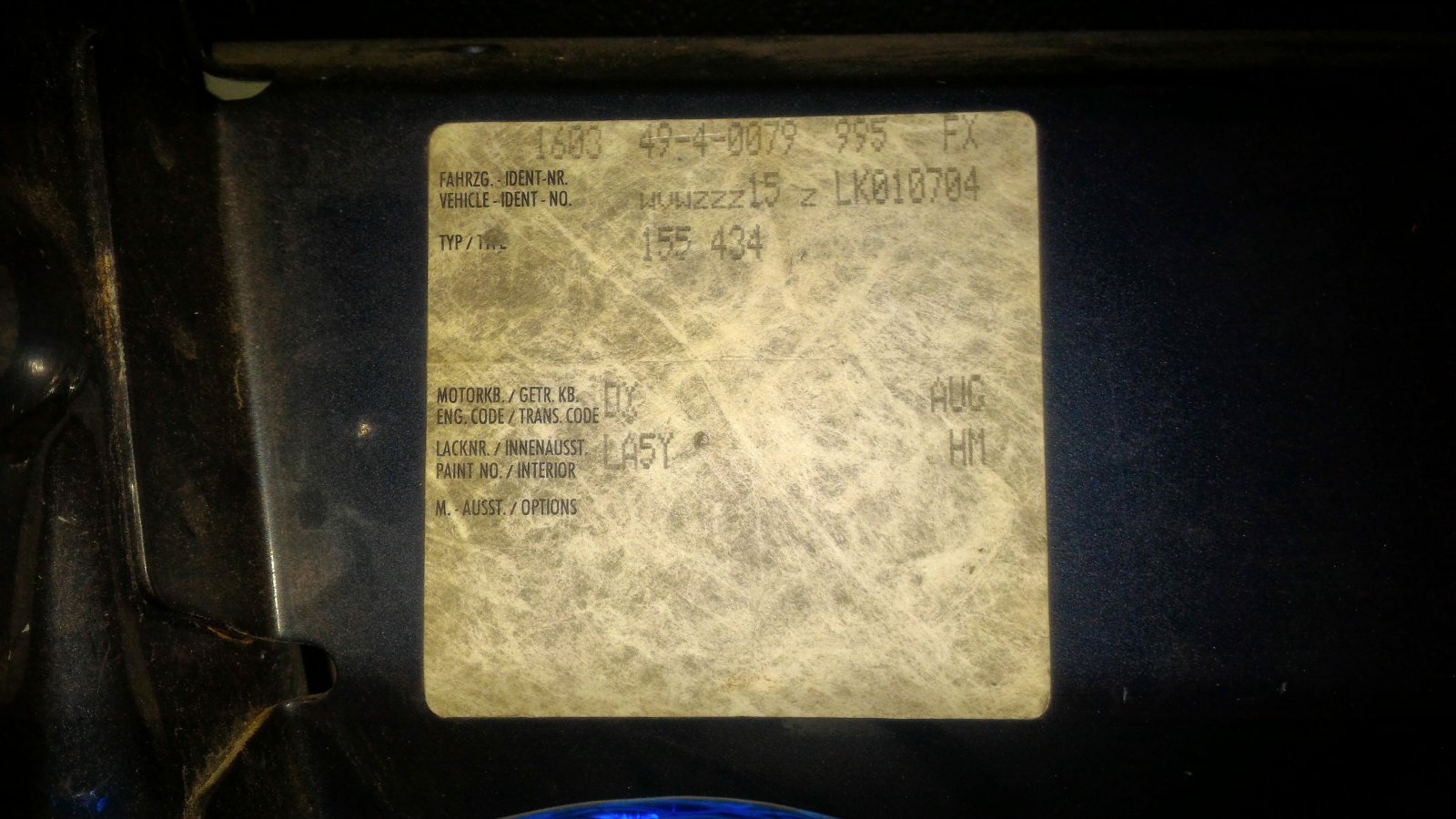 Voici l'étiquette de ma golf cabriolet immatriculer en 1990 ( modèle 1991 )