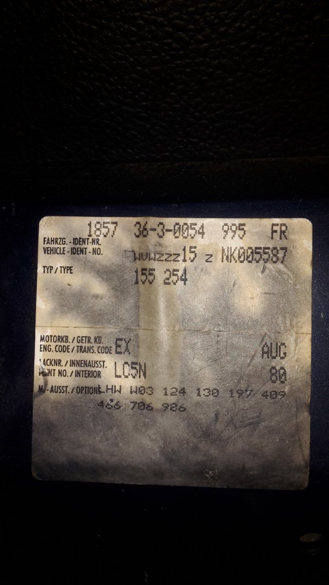 l'étiquette de coffre de ma classicline 1992 verte sièges cuir beige moteur 2h origine allemande.