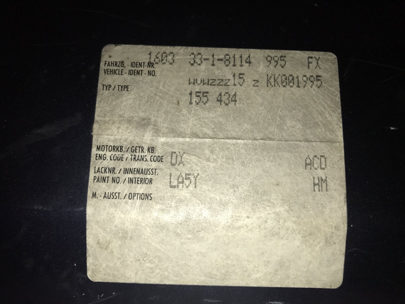 Voici l'étiquette de ma golf cabriolet immatriculer en 1990 ( modèle 1991 )