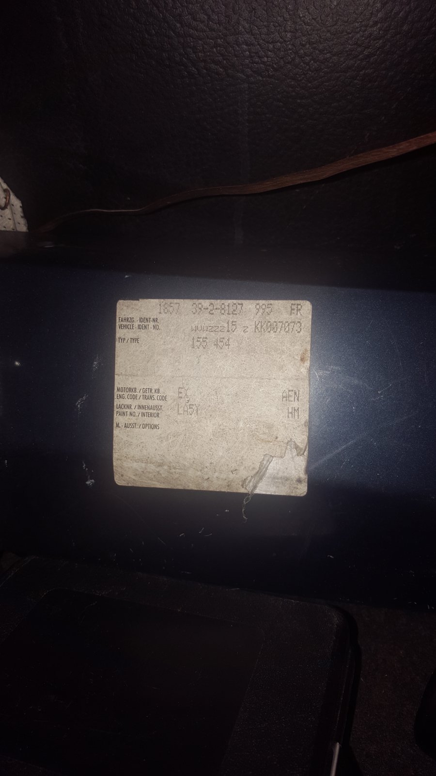 bonsoir à tous les membres. voici l'étiquette de coffre de ma golf du 09/93 1.8 i 98 chvx . j'ai bien lu quelques posts mise à part le code couleur et le type de boîte. je n'ai pas réussi à identifier le reste. merci l'équipe