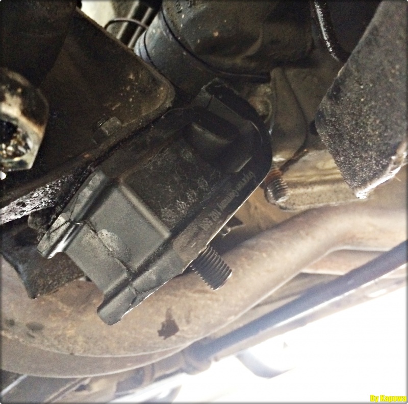 Dévissez les 2 boulons sur la partie supérieure du support qui est accroché encore à la boite de vitesse. Utilisez la clé plate de 13 car c'est peu accessible.