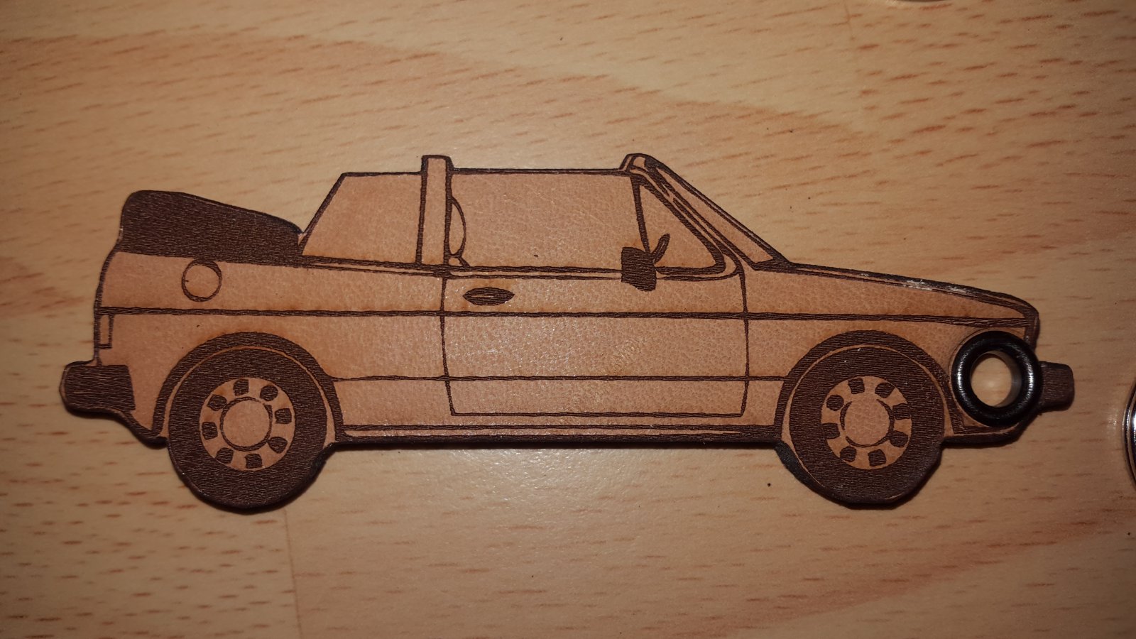 Petite trouvaille via Facebook: porte clef en gravure sur cuir pour 5 Euros ( hors frais de port )