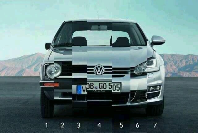 Quelques images me paraissant intéressantes montrant les évolutions stylistiques et de grandeurs de la Golf 1 à nos jours.