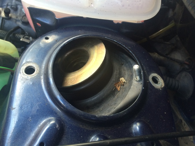 Par-contre, pour ceux qui ont des amortisseurs d'origine, il faut déposer la roue ainsi que la jambe de force et enfin la butée sera accessible.