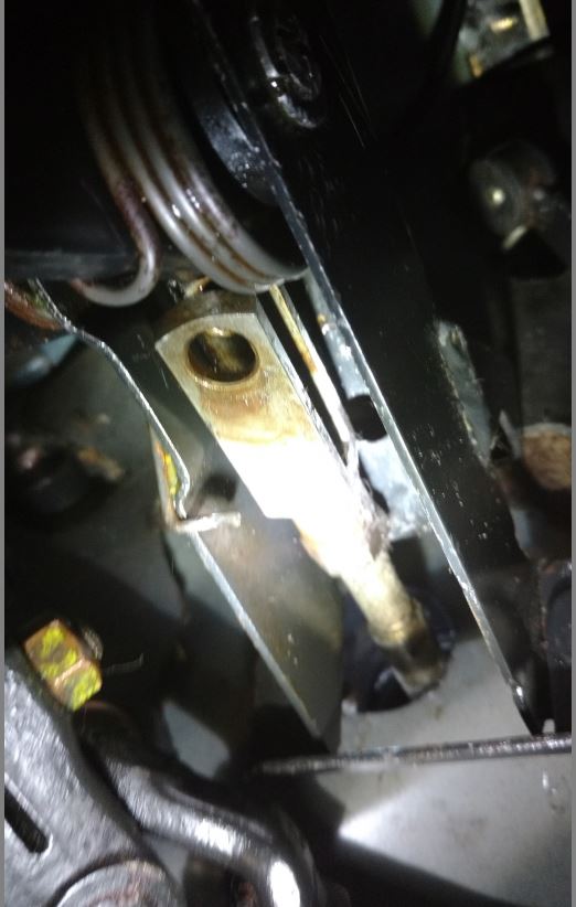 Comme les angles de la colonne et du tablier sont différent, cette action va permettre de libérer le pédalier du 4° boulon qui est soudé au tablier et rendre possible la rotation du pédalier.