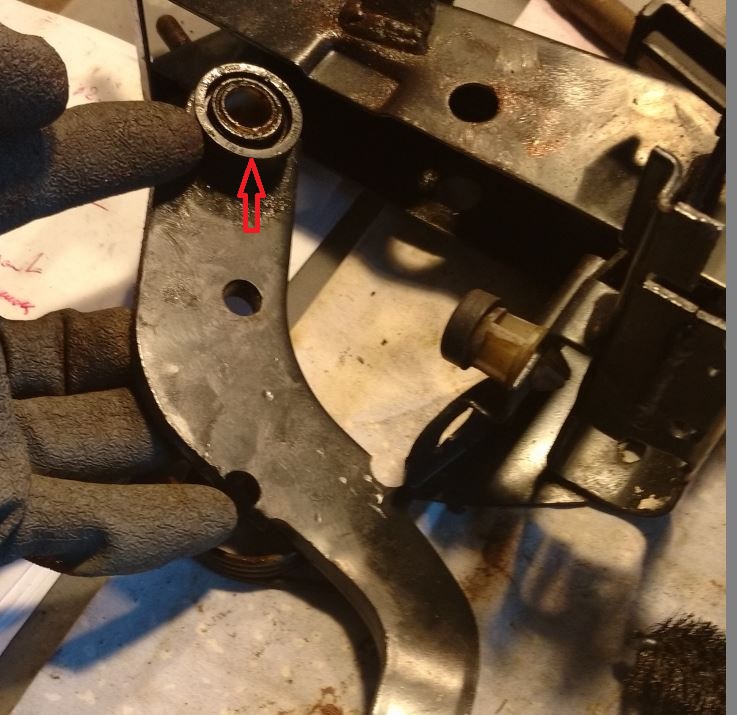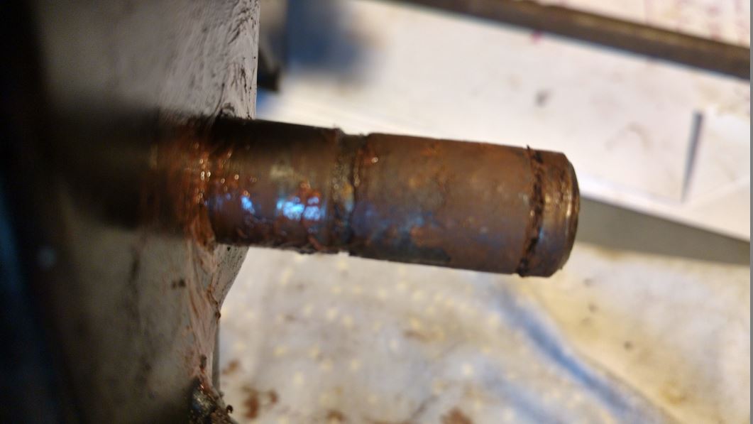 L’utilisation de dégrippant a amélioré le fonctionnement mais n’avait pas complètement résolu le problème. Il est possible de démonter l’axe en laissant le pédalier en place, mais dans mon cas la pédale de frein était complètement grippée sur son axe.