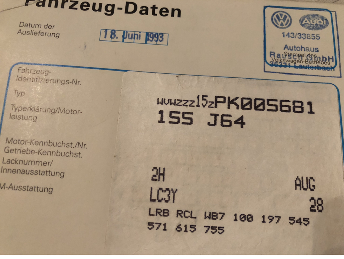 Chez VW France ils peuvent à partir de ton numéro de châssis te ressortir pas mal d'éléments et notamment les.options.