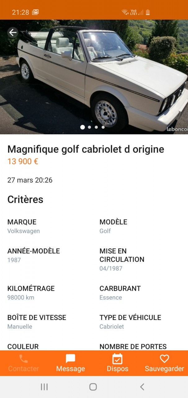 Re: Golf 1 Cabriolet...belles occasions au-dessus de 10.000€