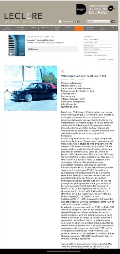 Et en fouillant un peu dans leur site, je suis tombé sur une autre Golf Cabriolet vendue en 2017.