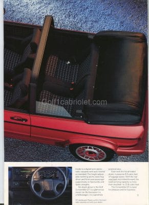 Voici la brochure officielle VW Royaume-uni de la Golf 1 cabriolet Clipper et GTi de janvier 1991