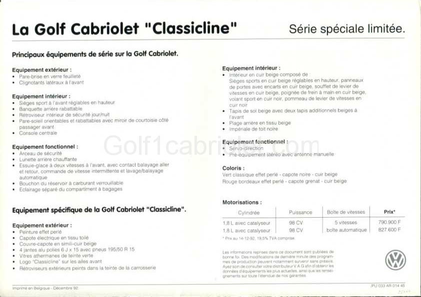 Le Catalogue Classicline de décembre 1992 (Belgique)