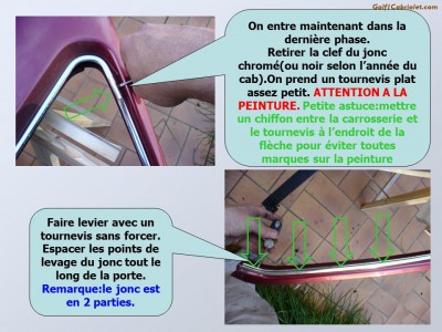 Voici un tutoriel complet sur la méthode de dégarnissage des portières de la golf 1 cabriolet. Le fichier est au format powerpoint. il est téléchargeable ci dessous avec la visionneuse au cas ou vous n’auriez pas le logiciel Microsoft Powerpoint.