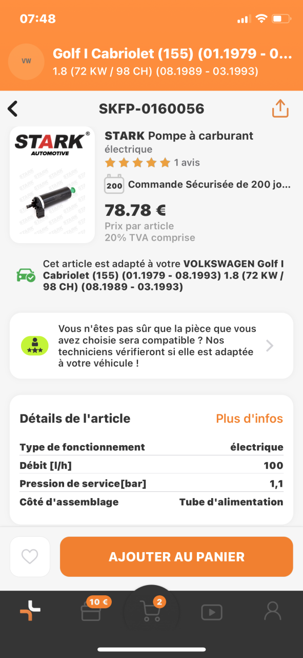 Re: quelle pompe a essence pour golf 1 cab moteur 2H ?