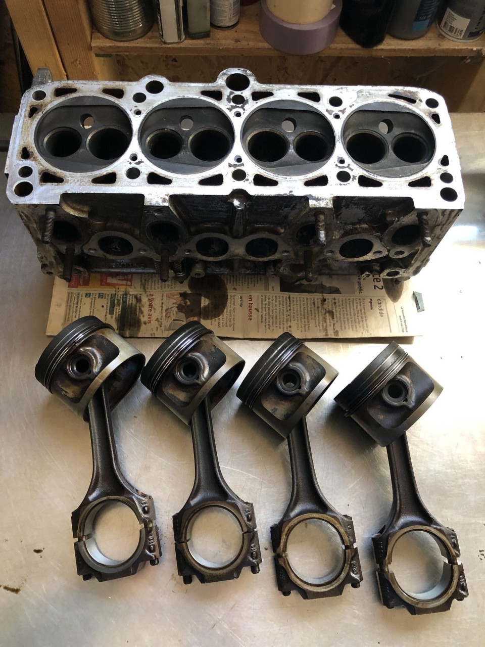 Beaucoup de pièces changées, bien sur des segments neufs, des coussinets de bielle neuf, un déglaçage des cylindres, un rodage des soupapes,... mais aussi "blanchiment" des portées sur marbre pour culasse, bloc, collecteurs d'échappement et d ...