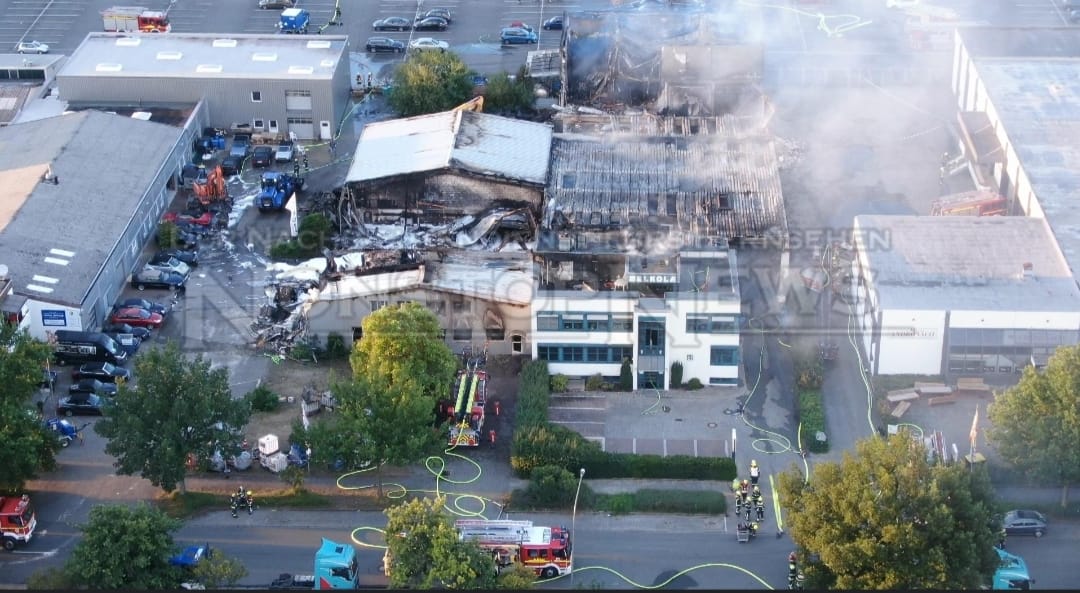 hier le 20 juillet il y a eu un incendie dans l'usine juste en face de chez cabrio zentrum.