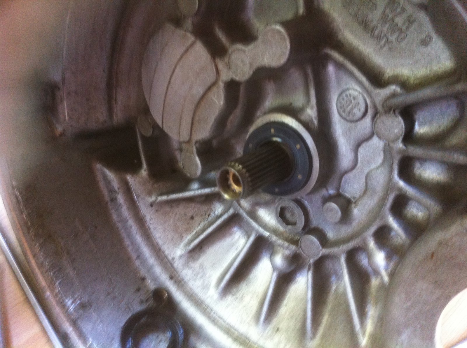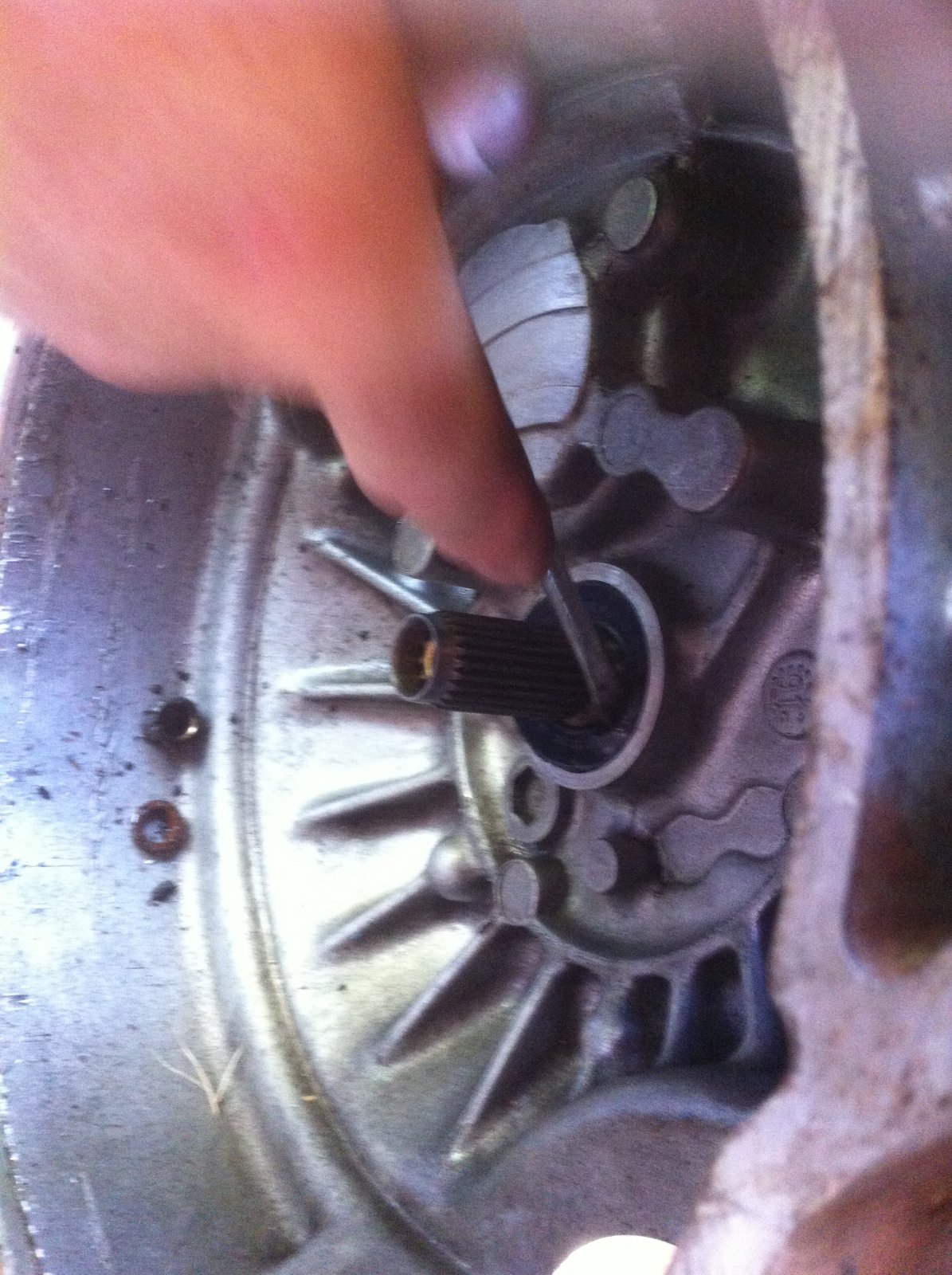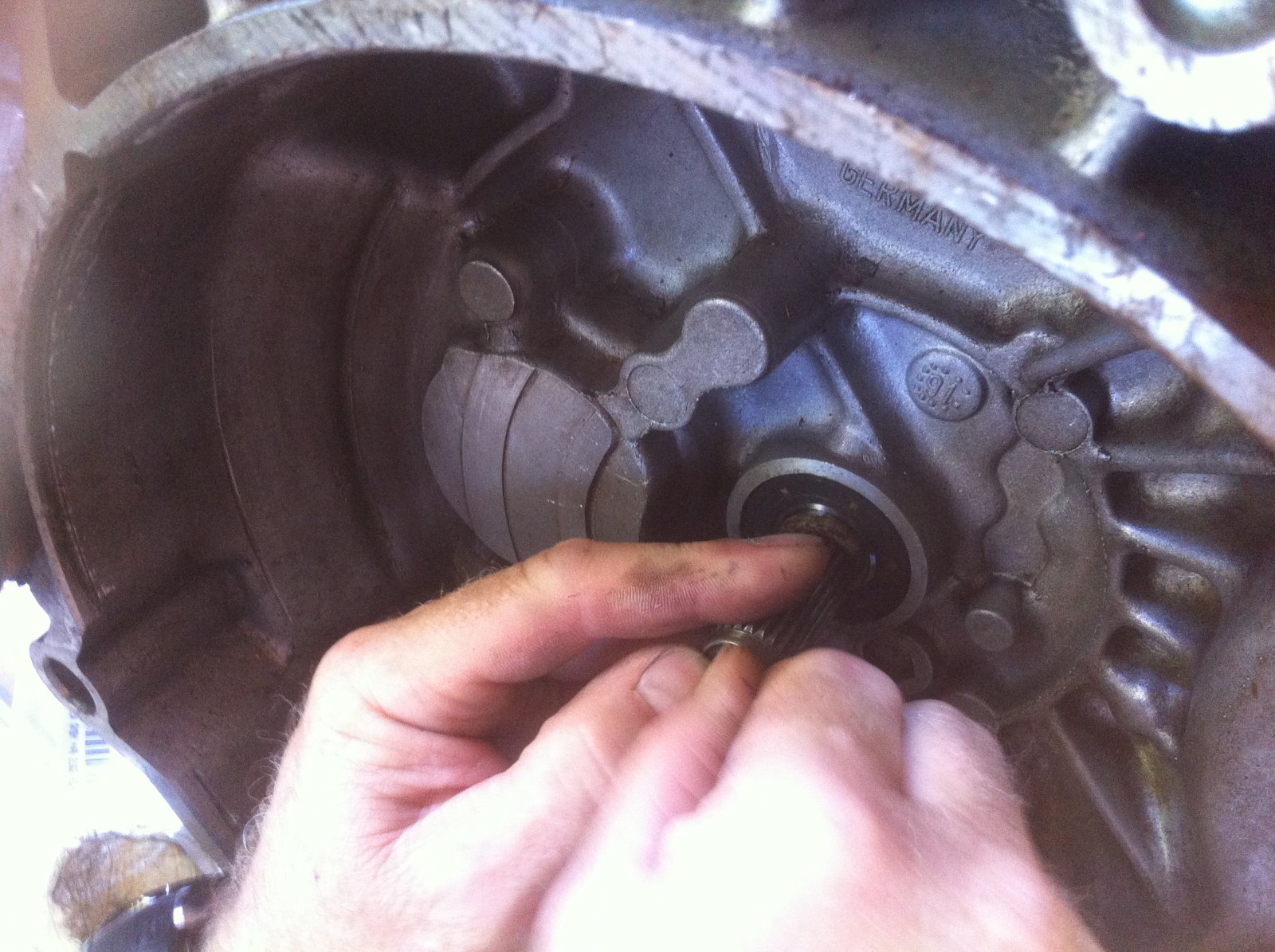 On accède alors à la bague à bronze, ici nous avons utilisé un petit arrache roulement facom en essayant de l'attraper par derrière mais sans succès