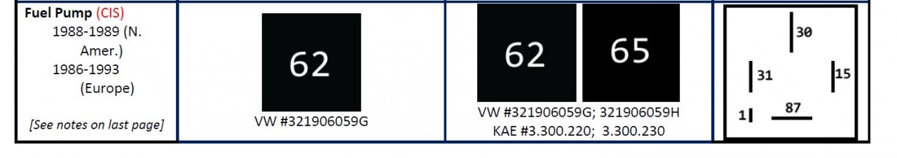 Remarque dans le tableau la broche 1 du relais s'appelle aussi 31b suivant les modèles de relais. Au final, j'ai cru devenir fou, toutes les mesures étaient bonnes et les masses aussi.