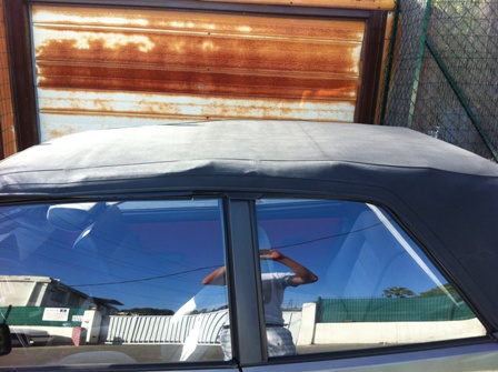 J'esserai de regarder la capote à moitié ouverte, ce que je sais c'est que ce n'est pas la capote d'origine que la deuxième proprio l'avait fait changer!J ai eu quand pas mal d'info sur ma voiture qui est surtout resté sur Cannes et comme pas banal ce marron, les gens s'en souviennent!Un ami du mécano qui s'est occuper de la restau se souvient bien avoir travaillé dessus!!