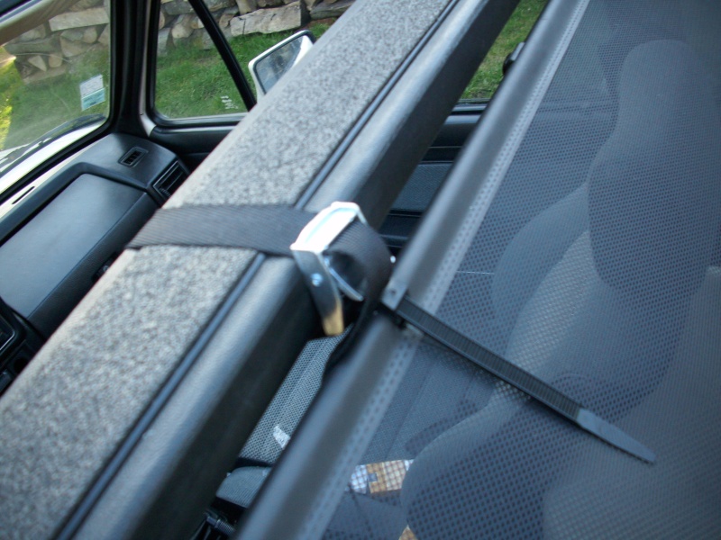 Celui ci a été fait avec un pare soleil de Xantia 4 sangles acheté chez Norauto et 4 gros rislans