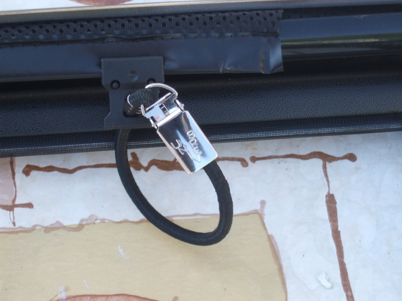 une latte de bois je fixe les pare soleil dessu et les sangle en bas et les elastique en haut