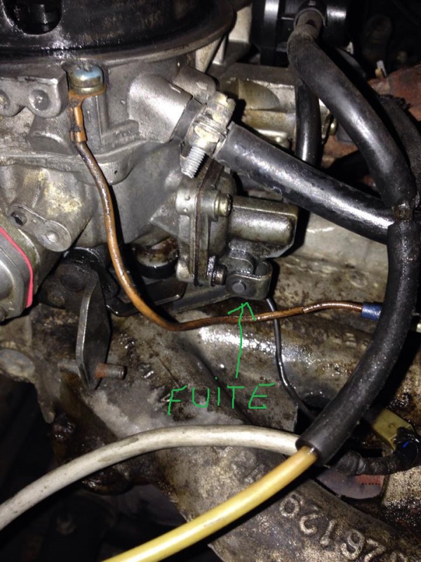 bonsoir/jour a tous, en bricolant cette apres-midi j'ai vu une tache d'essence sous la caisse. j'ai décider d'ouvrir le capot et je voit d'ou vien la fuite mais sa me parait bizzard.