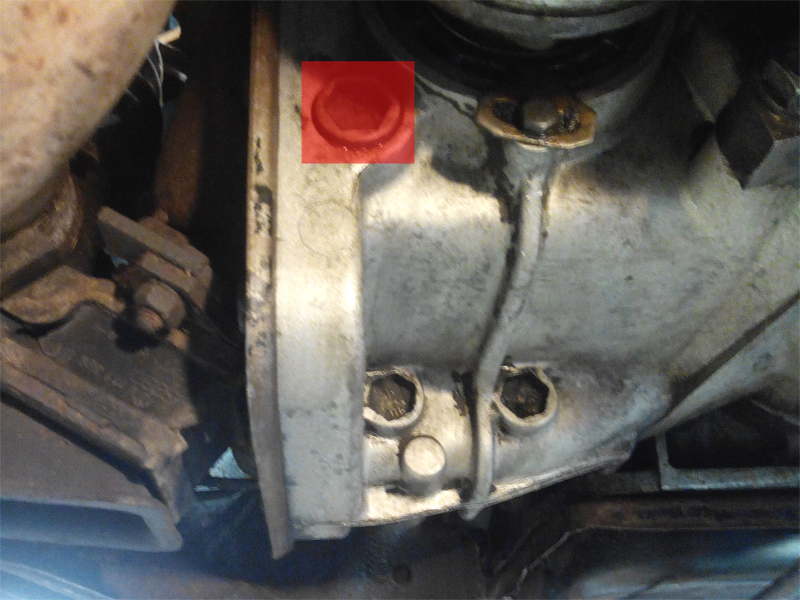 - Dévisser la vis/bouchon de remplissage d'huile de la transmission.