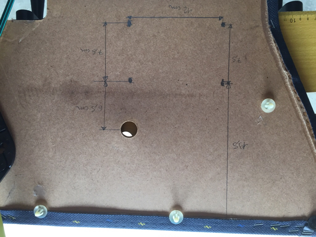 Deuxième étape lorsque vous avez sorti les panneaux il est nécessaire de faire 4 trous pour passer la grille de hp, je vous ai mis mes côtes sur une des photos afin que votre hp soit au bon endroit premièrement pour qu il y ai assez d espace pour l aimant et deuxièmement pour que la grille soit au bon endroit pour pouvoir se servir de la manivelle lève vitre