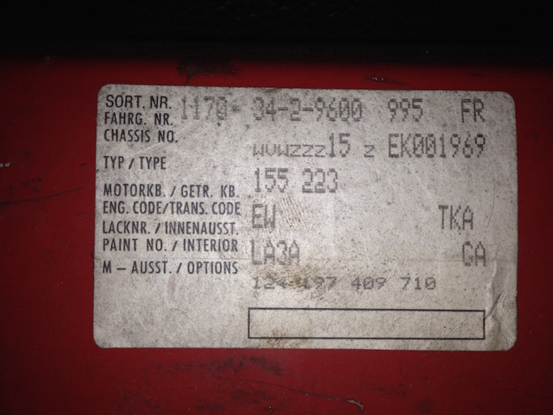 elle aurait été fabriquée par l'usine karmann en 1992 et serait la 8445ème de l'année.