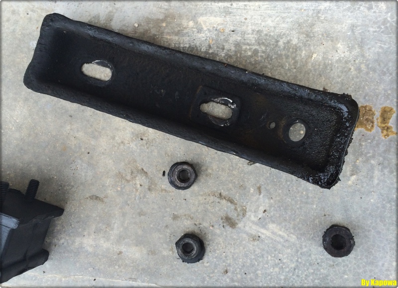 Dévissez les 2 boulons sur la partie supérieure du support qui est accroché encore à la boite de vitesse. Utilisez la clé plate de 13 car c'est peu accessible.