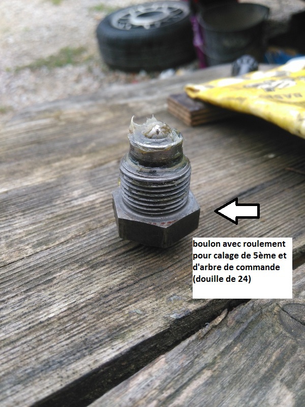 Boîte bloquée sûr marche arrière ! L'ancien pignon de compteur et l'aiment en travers des deux arbres... (voir ma présentation ).