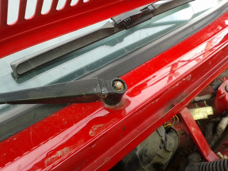 il ne reste plus qu'a sortir le ventilateur (attention il est maintenue par une partie qui vient se placer dans une fente du bloc de ventilation), pour une meilleur efficacité et le sortir le plus simplement possible, il est recommandé d'enlever tout le système d'essuie-glace, les deux bras, les deux vis de maintient et de le pousser sur le coté droit dans la baie de pare-brise.