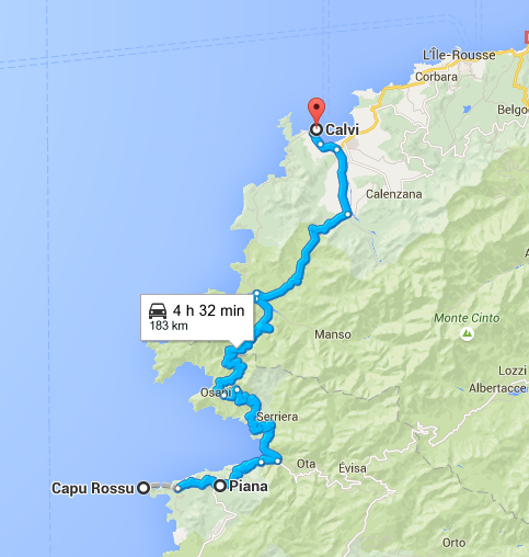 Etape : Calvi/Col de Palmarella/Col de la Croix/plage de Caspio/Porto/Calanches de Piana/Piana/Capo Rosso/Calvi