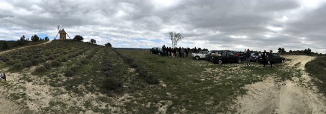 Premier arrêt devant le moulin et les champs de thyms