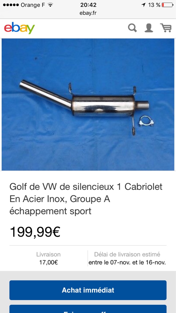 salut. moi sur la mienne j'ai ce silencieux http://www.nsbconcept.com/vw-golf-i-ech ... acing.html avec en+ juste un collecteur inox,l'intermédiaire lui est d'origine. je peut te dire que ça fait un jolie bruit! a la longue dès fois,méme un peut trop.